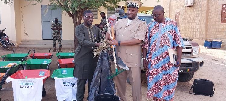 Afin de répondre à ce besoin et sur demande des autorités, le bureau régional de la MINUSMA a remis un important lot de matériel d’assainissement pour faire de cette première édition un succès et pérenniser cette initiative.