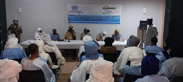 Organisée par la MINUSMA avec l’Equipe Régionale d’Appui à la Réconciliation (ERAR), ces activités s’inscrivent dans le cadre d’un programme de soutien aux efforts de réconciliation du Gouvernement à travers la formation des membres des Comités Communaux de Réconciliation dans les régions du Nord et du Centre du Mali.